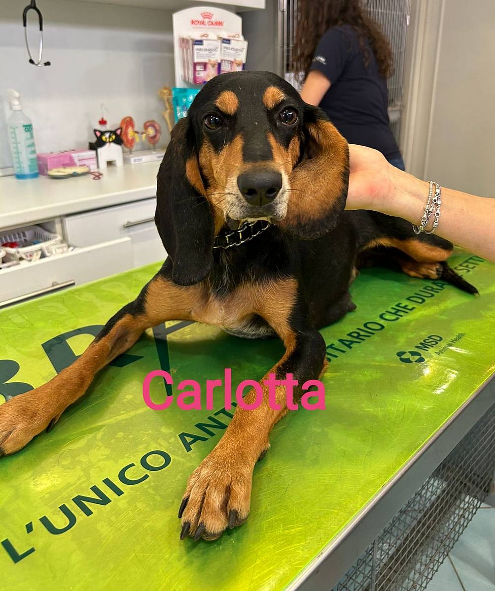Die hübsche Carlotta wurde entdeckt, als sie futtersuchend umherirrte. Leider stellte sich heraus, dass die Hündin extrem ängstlich ist und das Einfangen eine große Herausforderung darstellte. Es dauerte sage und schreibe ein Jahr, bis Carlotta endlich gesichert werden konnte. In diesem Jahr brachte sie drei Würfe zur Welt.