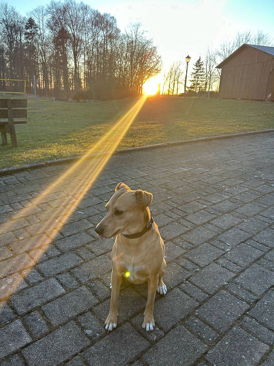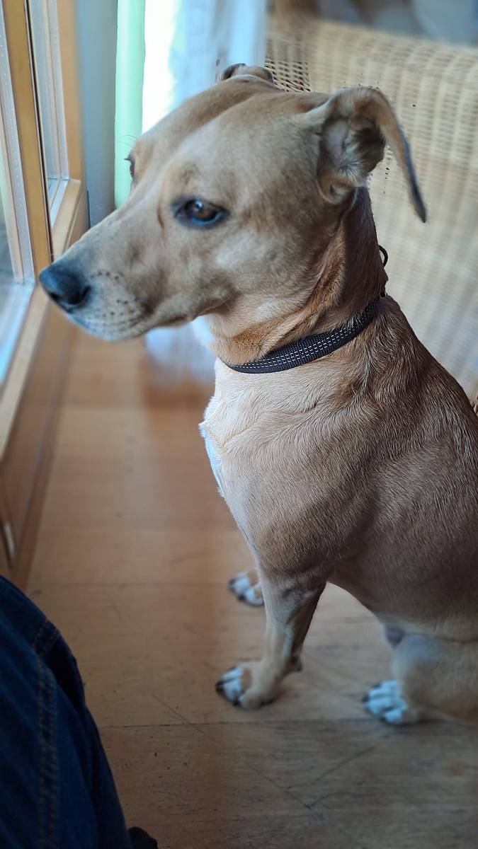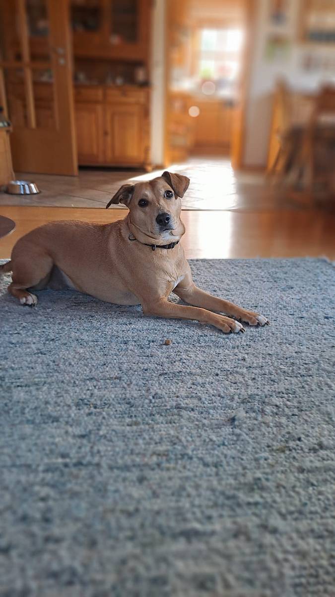 Die Mischlingshündin hat Territorialverhalten, welches gerne mit Geduld und Training eingegrenzt werden darf.